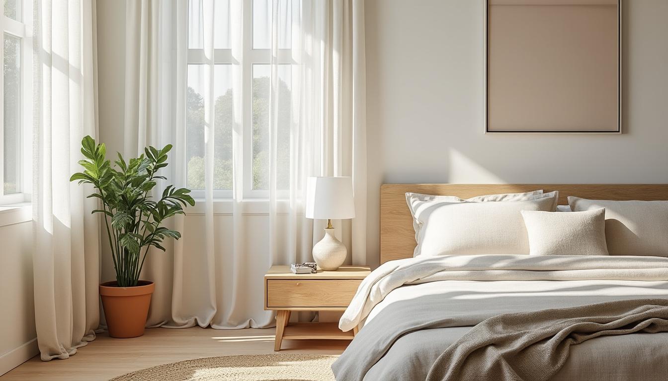 Favoriser un sommeil profond avec une chambre beige et blanc illuminée par des luminaires doux