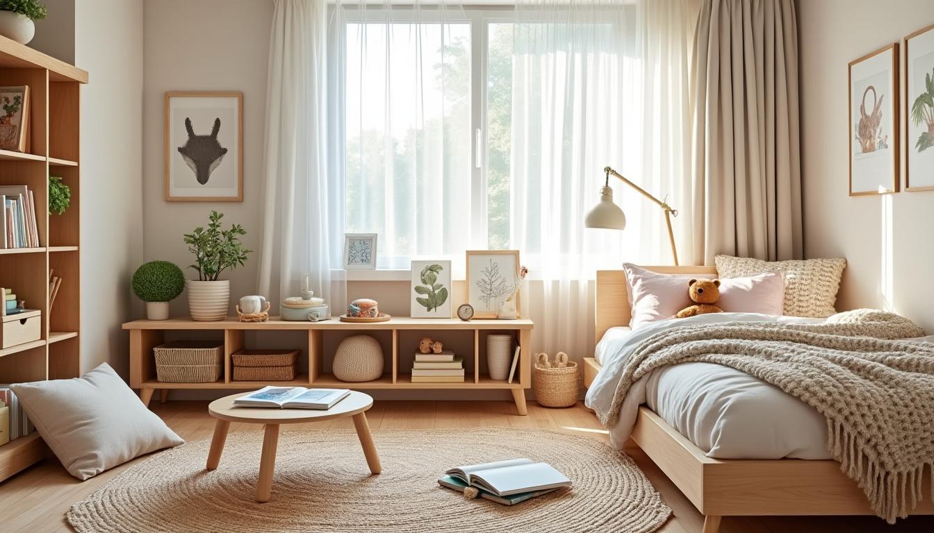 Une organisation réfléchie de la chambre joue un rôle déterminant pour un espace apaisant. Le choix des rangements adaptés, comme des boîtes colorées et des étagères accessibles, participe à la propreté de la pièce tout en encourageant l’enfant à ranger seul. Transformer le dessous d’un lit surélevé en espace de jeu ou stockage maximise également l’espace disponible.